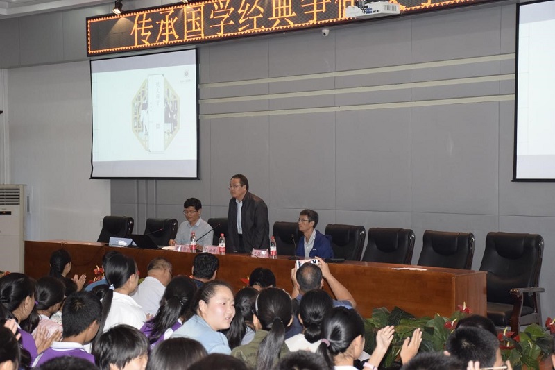 黄昏雨后,微风徐来,正值金秋来临之际。9月19日下午,河北大学文学院汉字国学团队张振谦、王强军、刘青松老师一行走进保定市三中分校,为七年级的同学们带来了一场精彩的讲座。