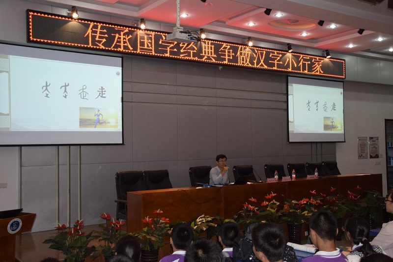 最后,刘老师总结:“了解一个字,首先要了解这个字的基本构件,以基本构件为单位,进一步分析字形,了解它们古今含义的变化,就能正确理解一个字的真正含义。”刘老师的讲解生动有趣、旁征博引,获得学生们阵阵掌声。