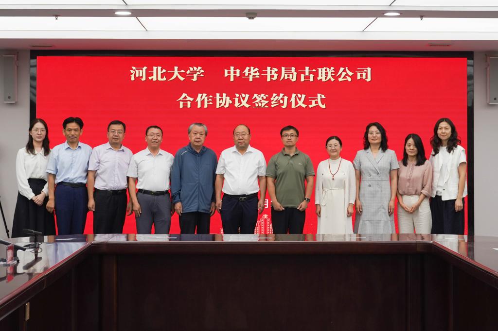张锋副校长和洪涛总经理代表双方签署了“河北大学与中华书局古联公司共建‘汉字资源建设与国家数字化治理实验室’”的协议;我院教师张航与朱翠萍总编辑代表双方签署“《中华大藏经》外字整理”横向课题合同书。