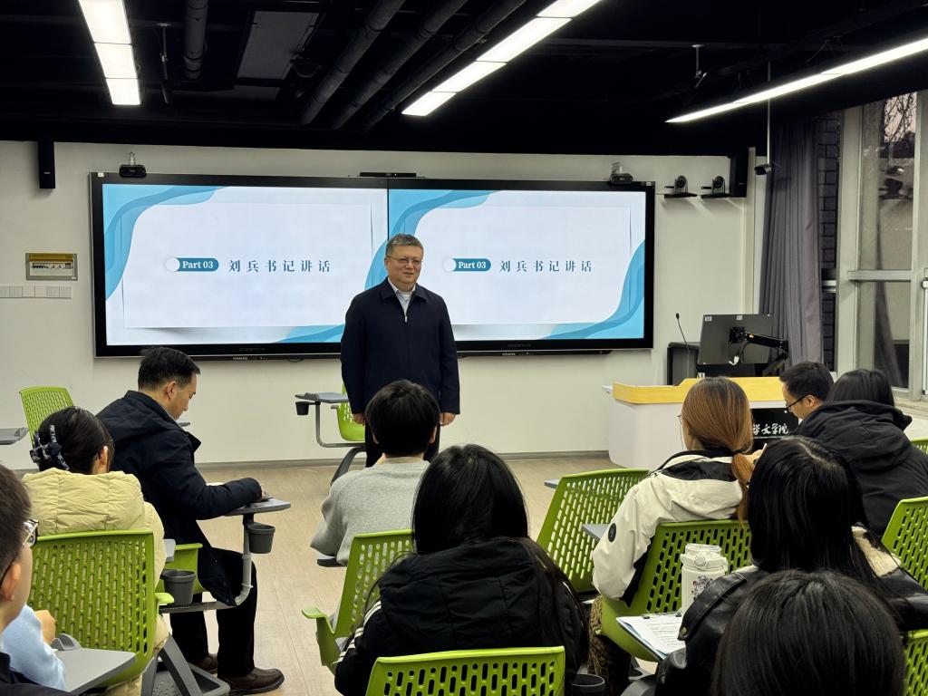 12月25日下午,校党委书记刘兵参加了联系班级2024级汉语言文学拔尖班开展的现代文学课堂实践成果展演活动。拔尖班辅导员陈寒光、李致和全体学生参与活动。