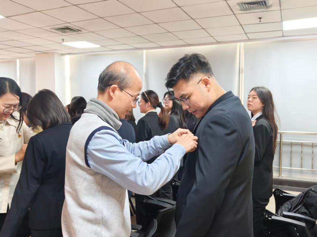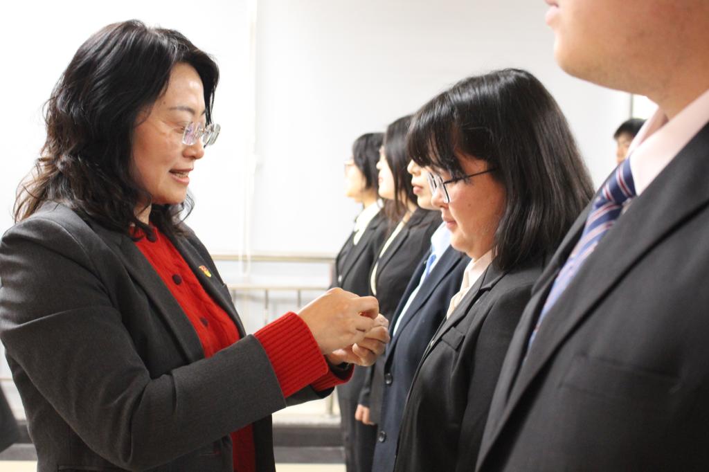 学院领导和支部书记为新党员佩戴了党徽。